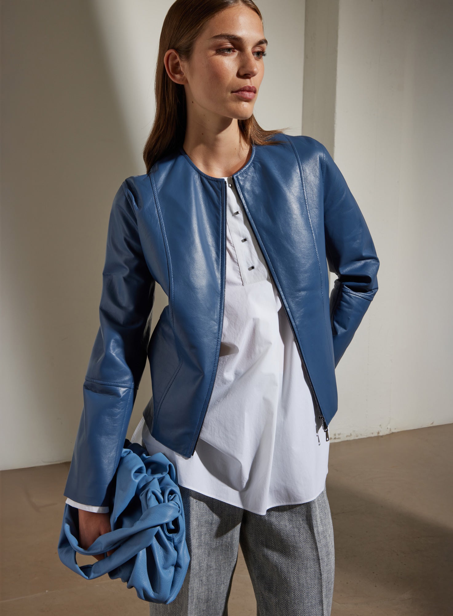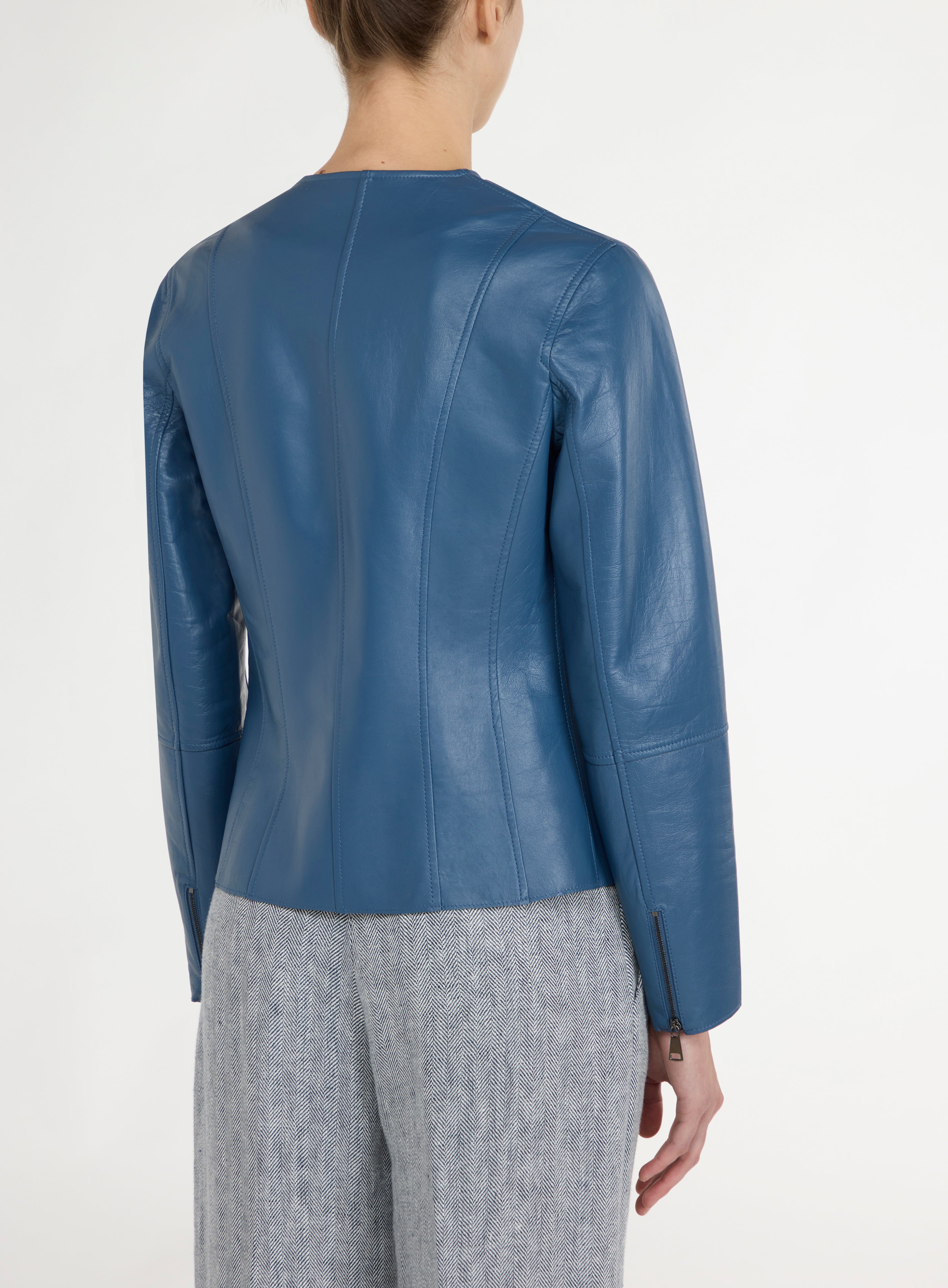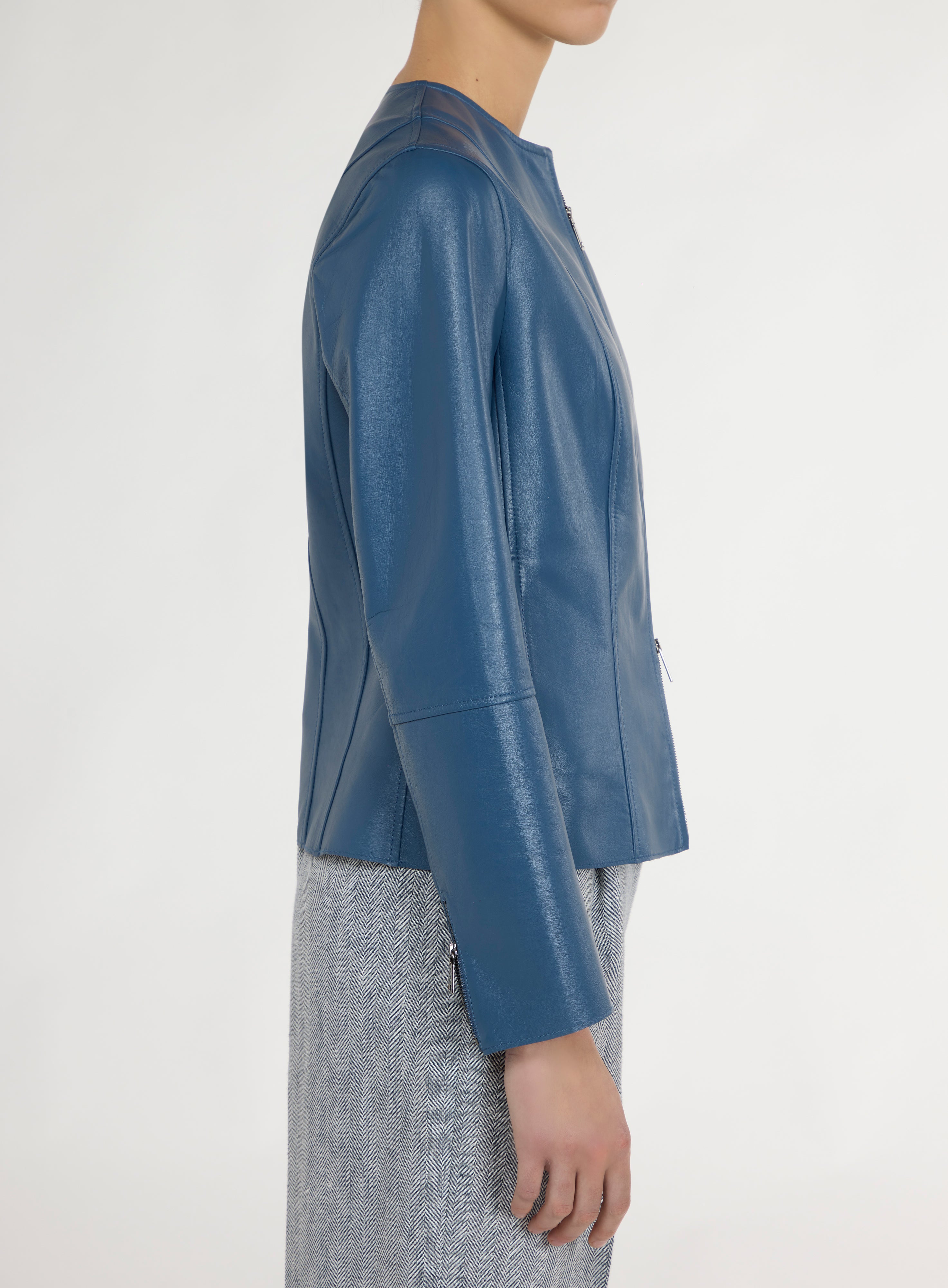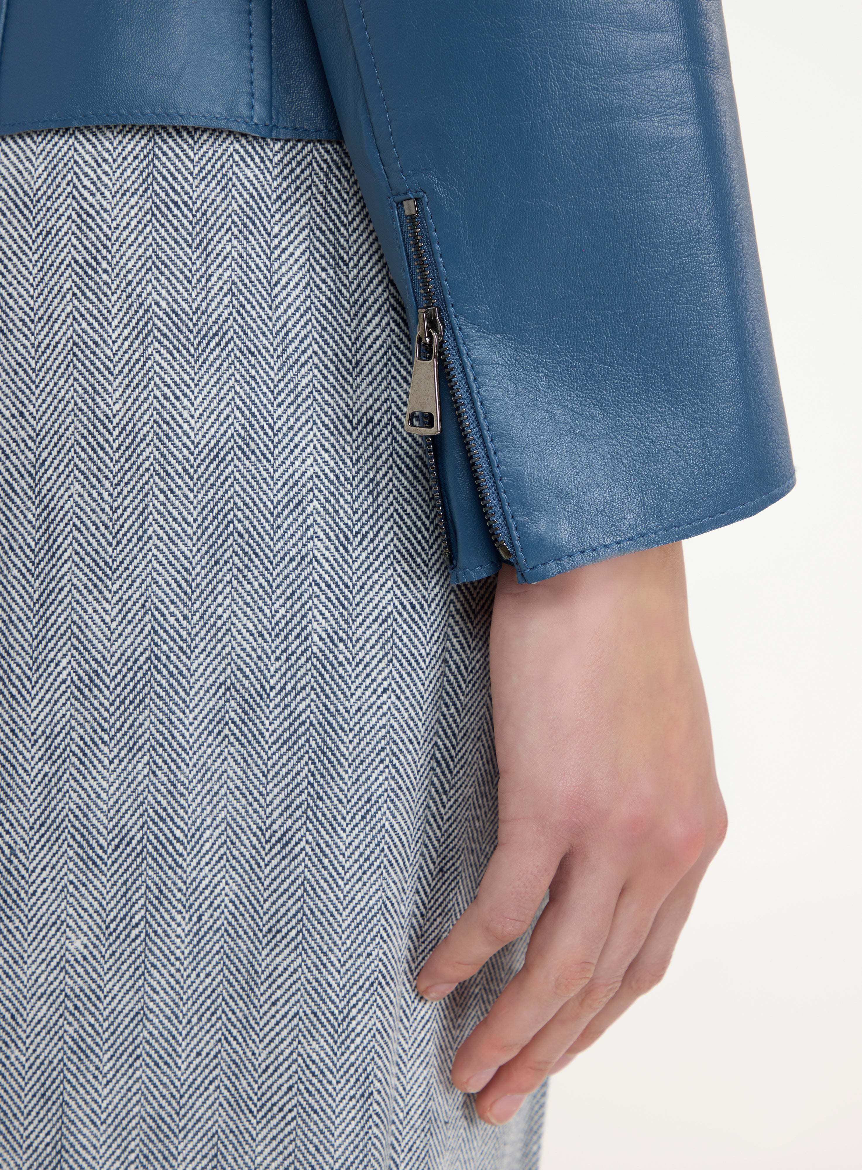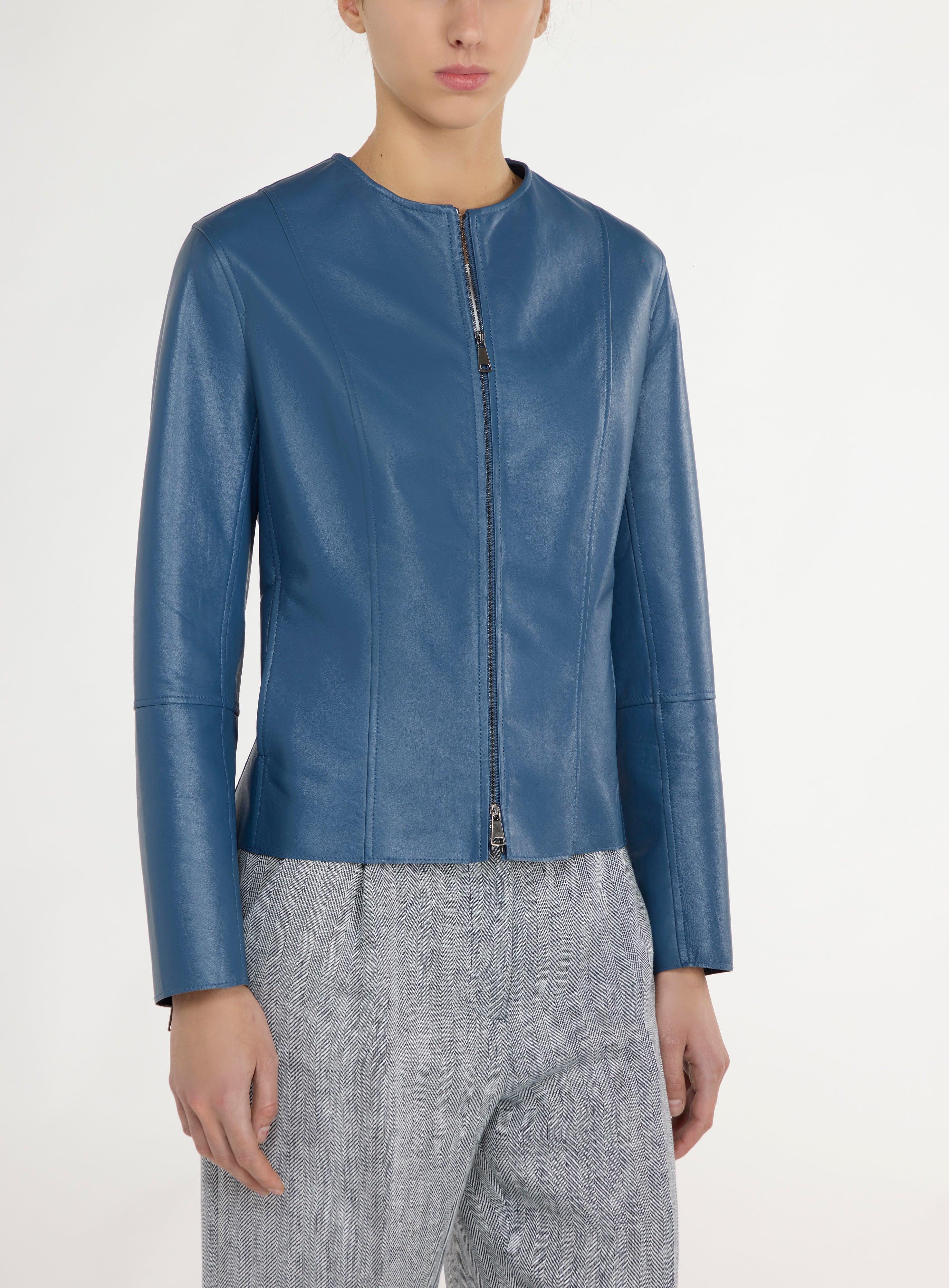 Zip-up leather jacket.