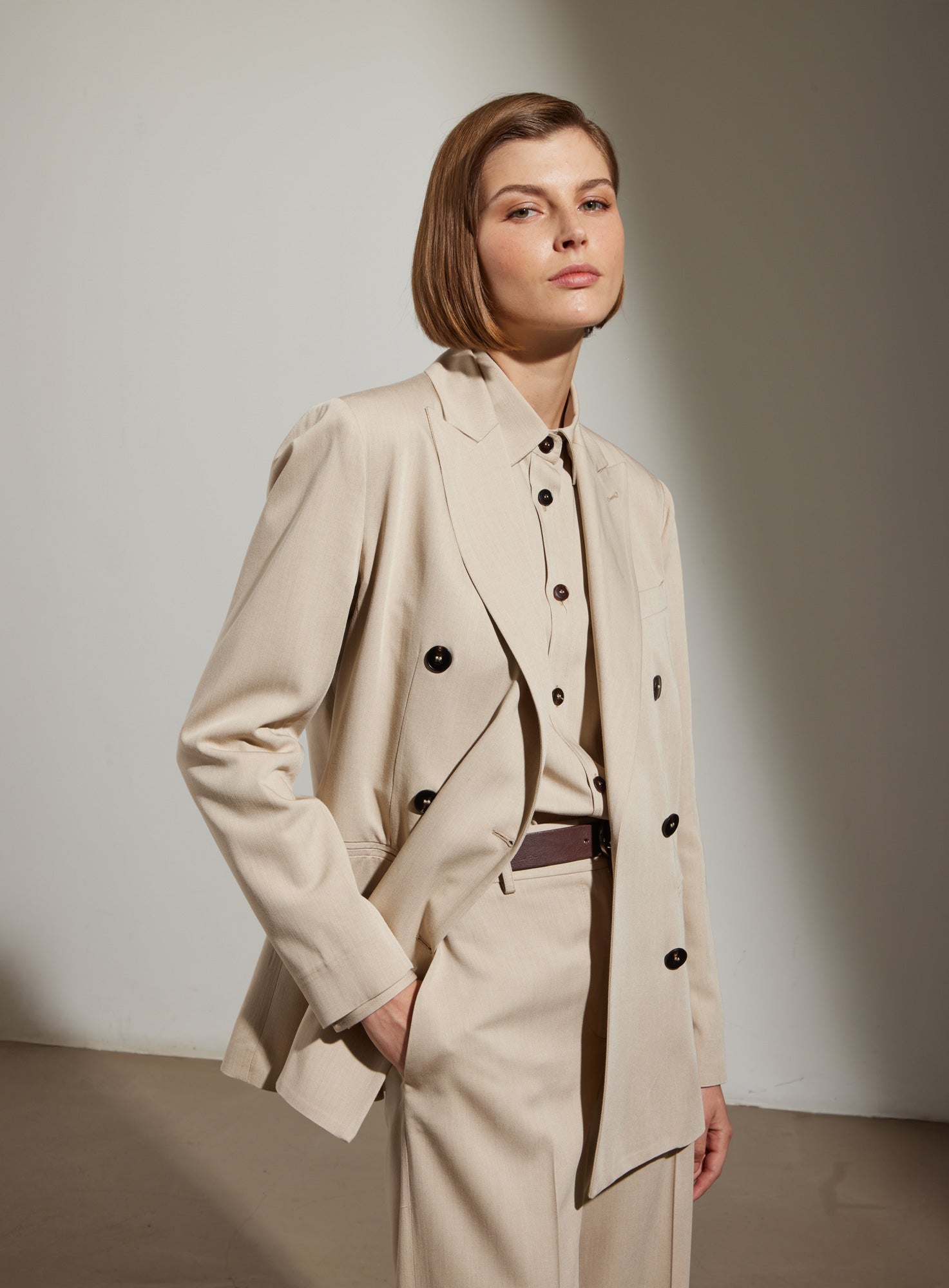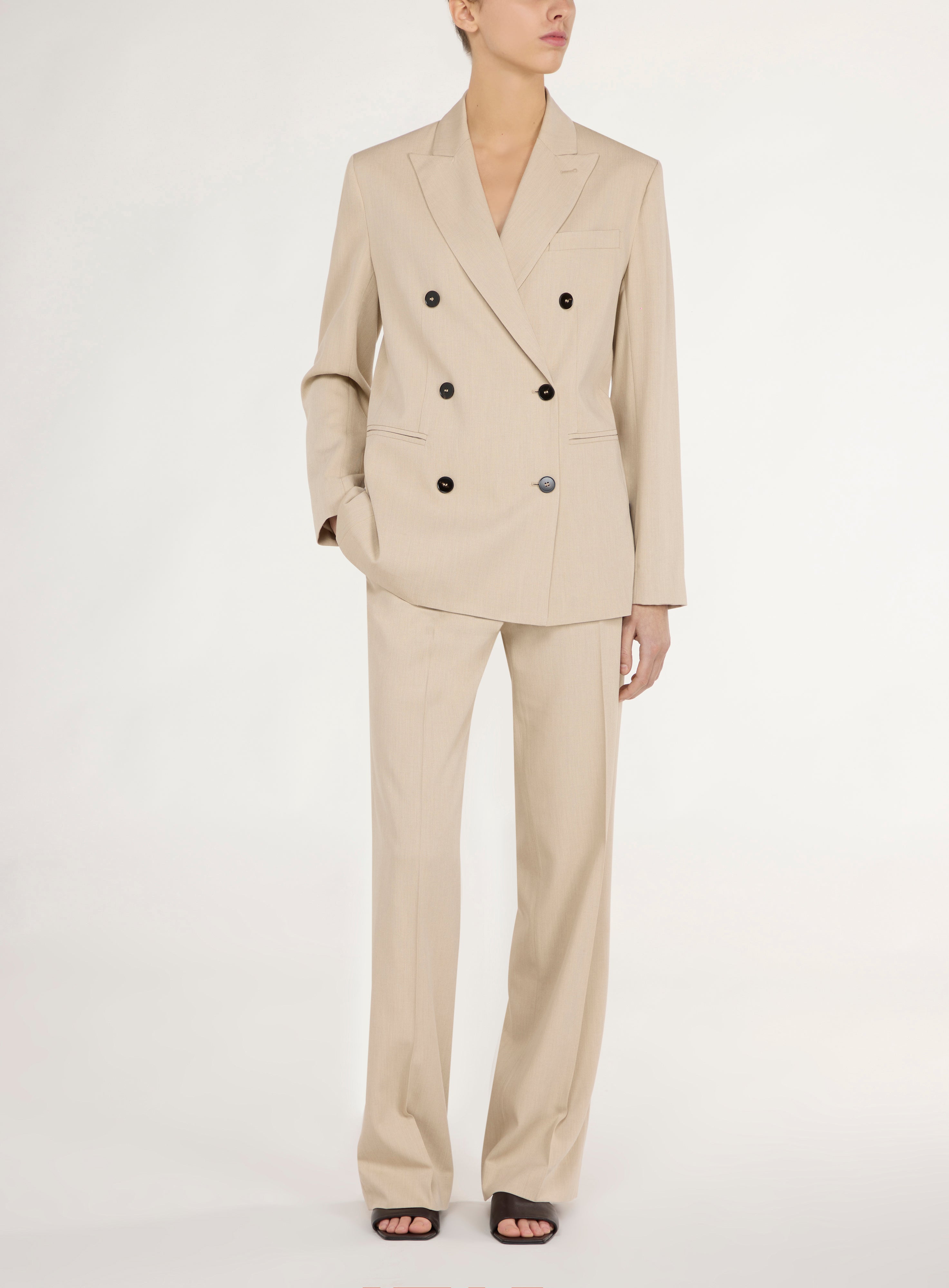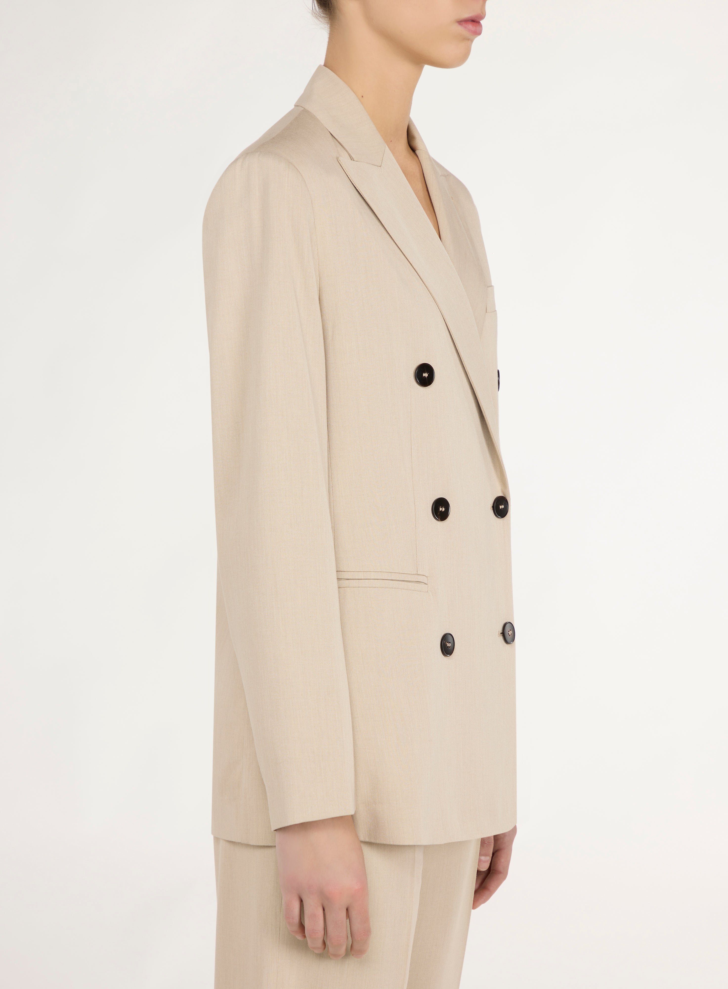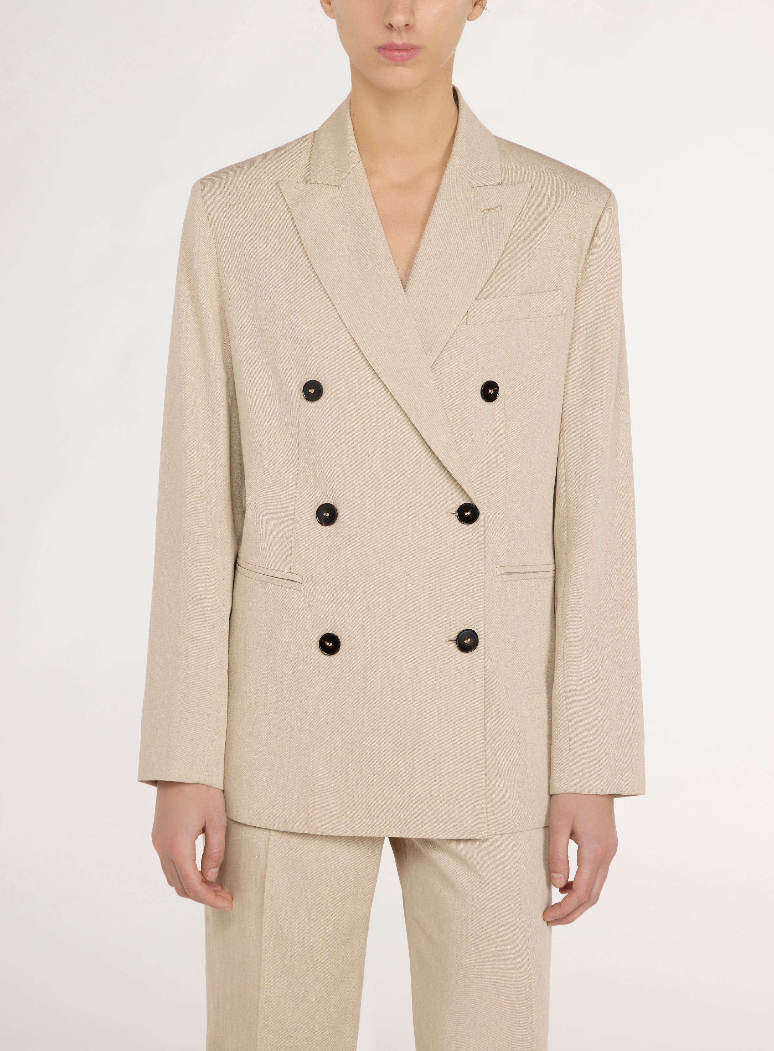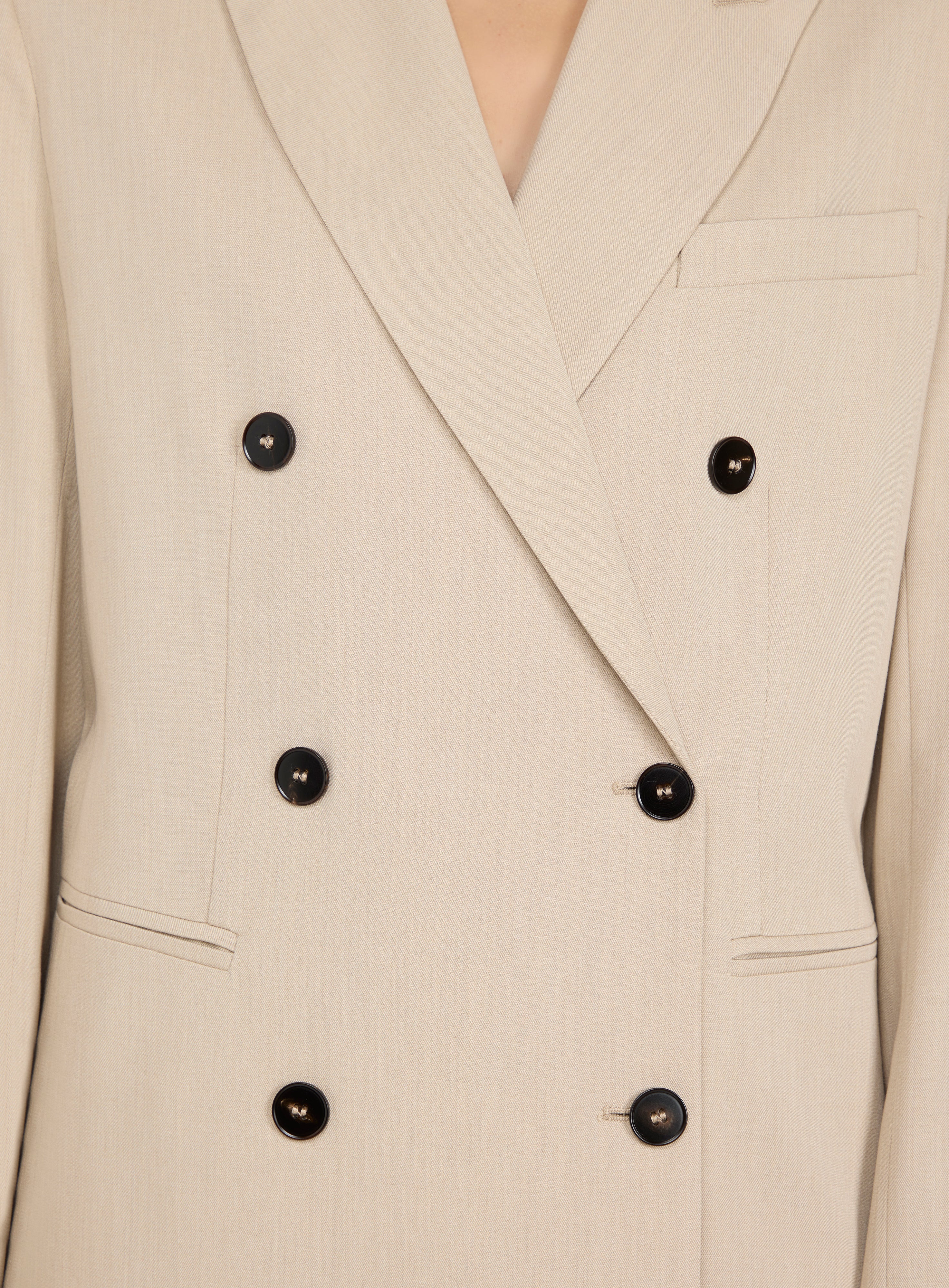 Double-breasted coat.