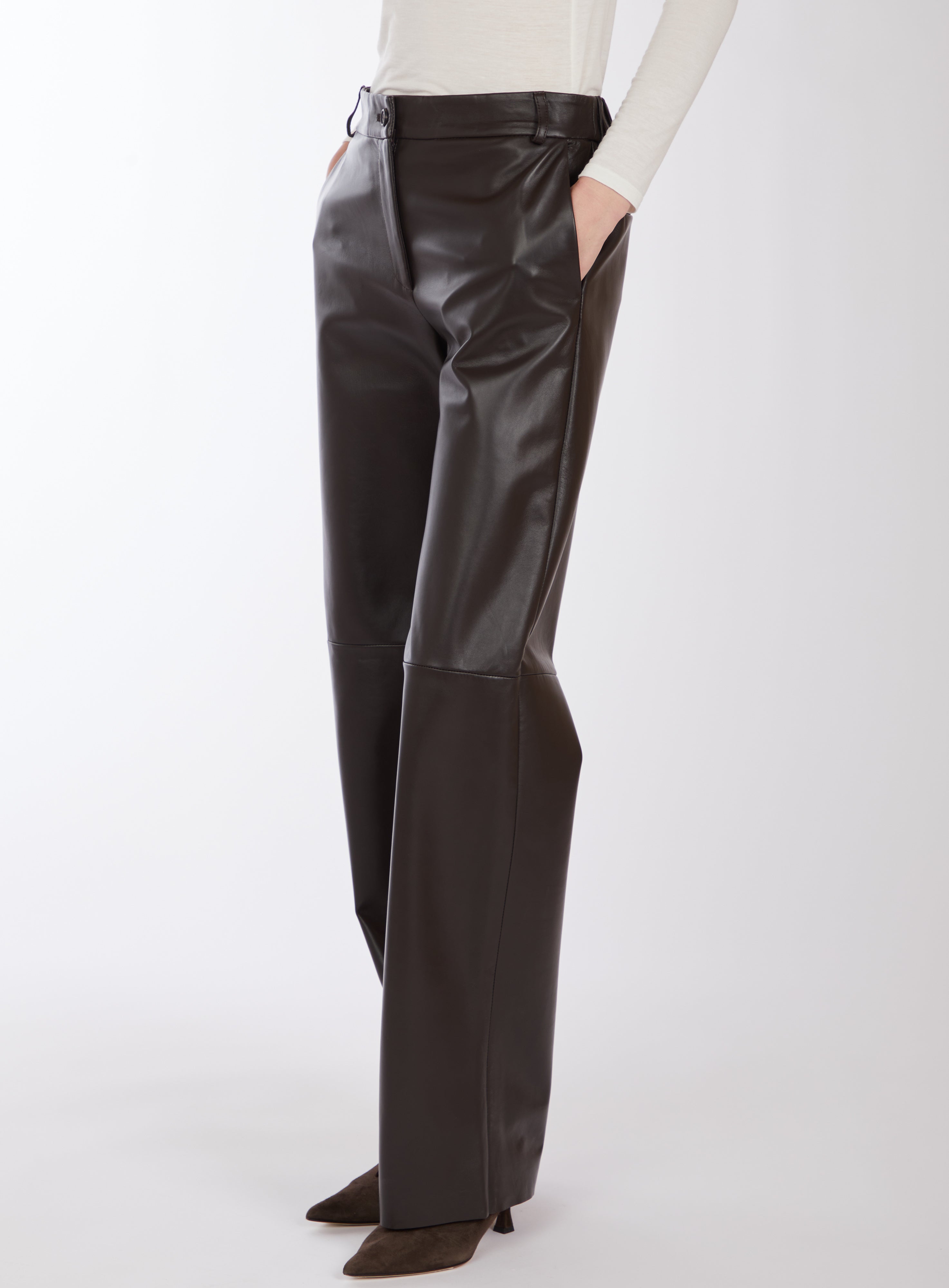 Pantalone in pelle a gamba dritta.
