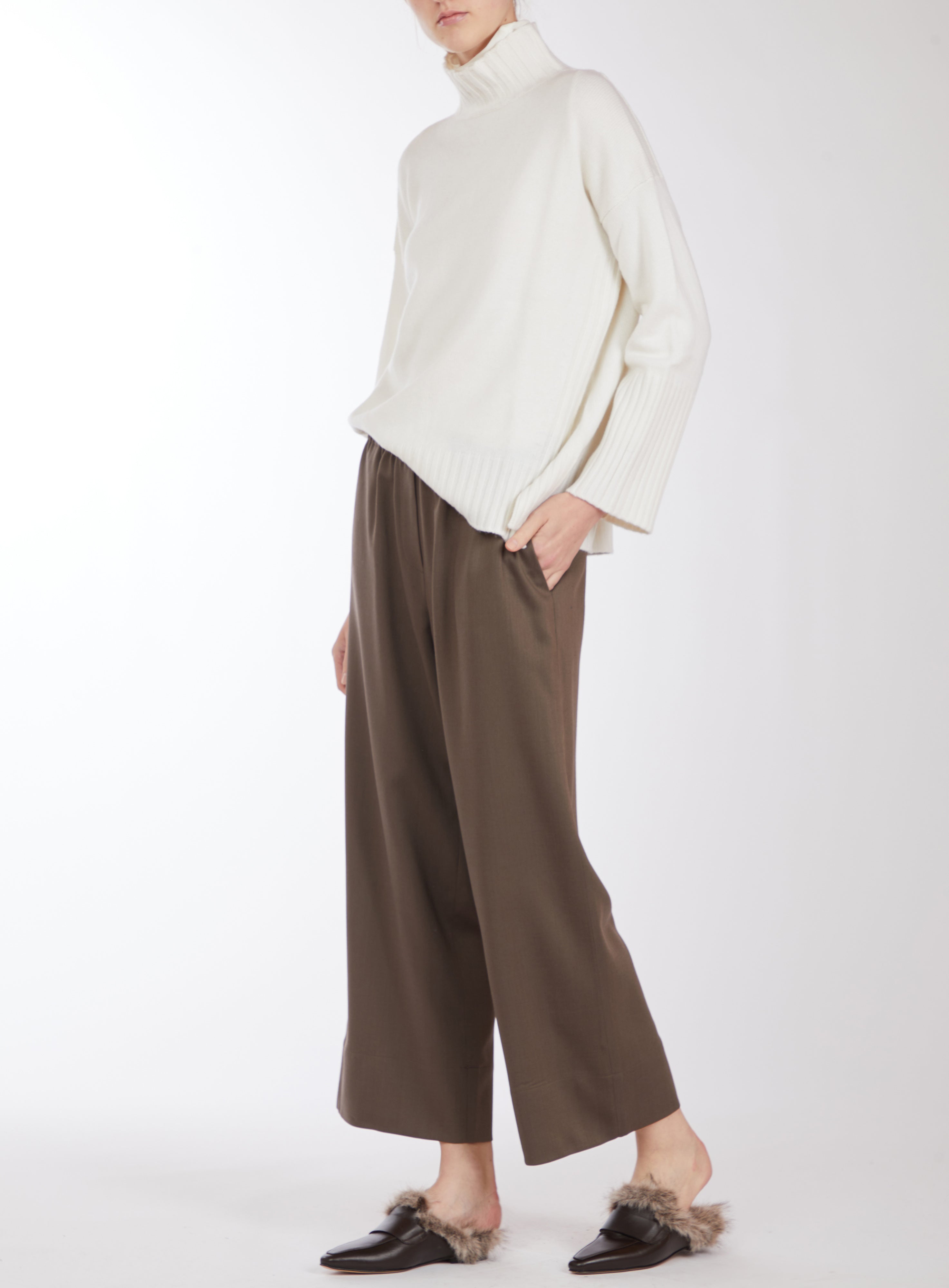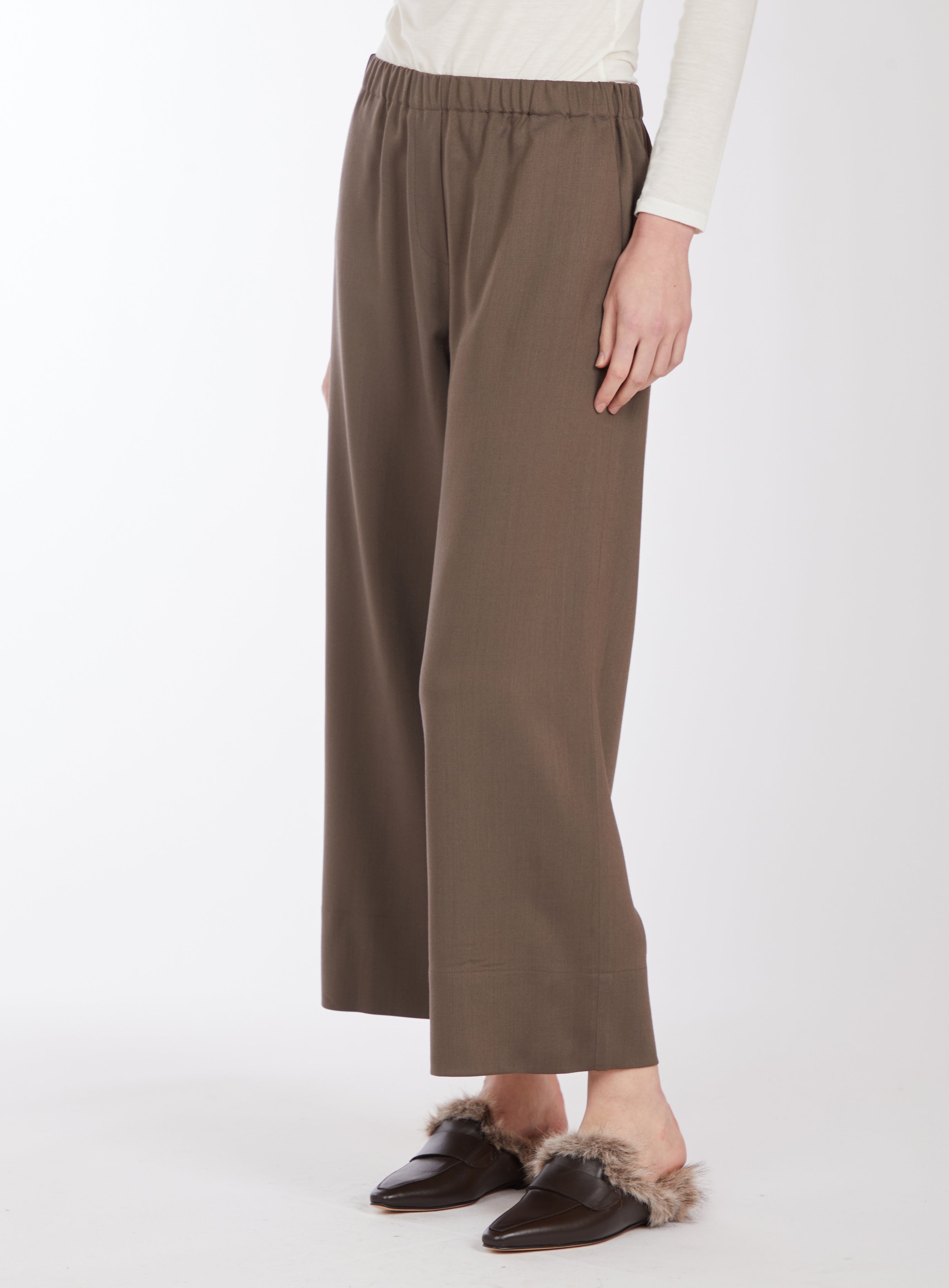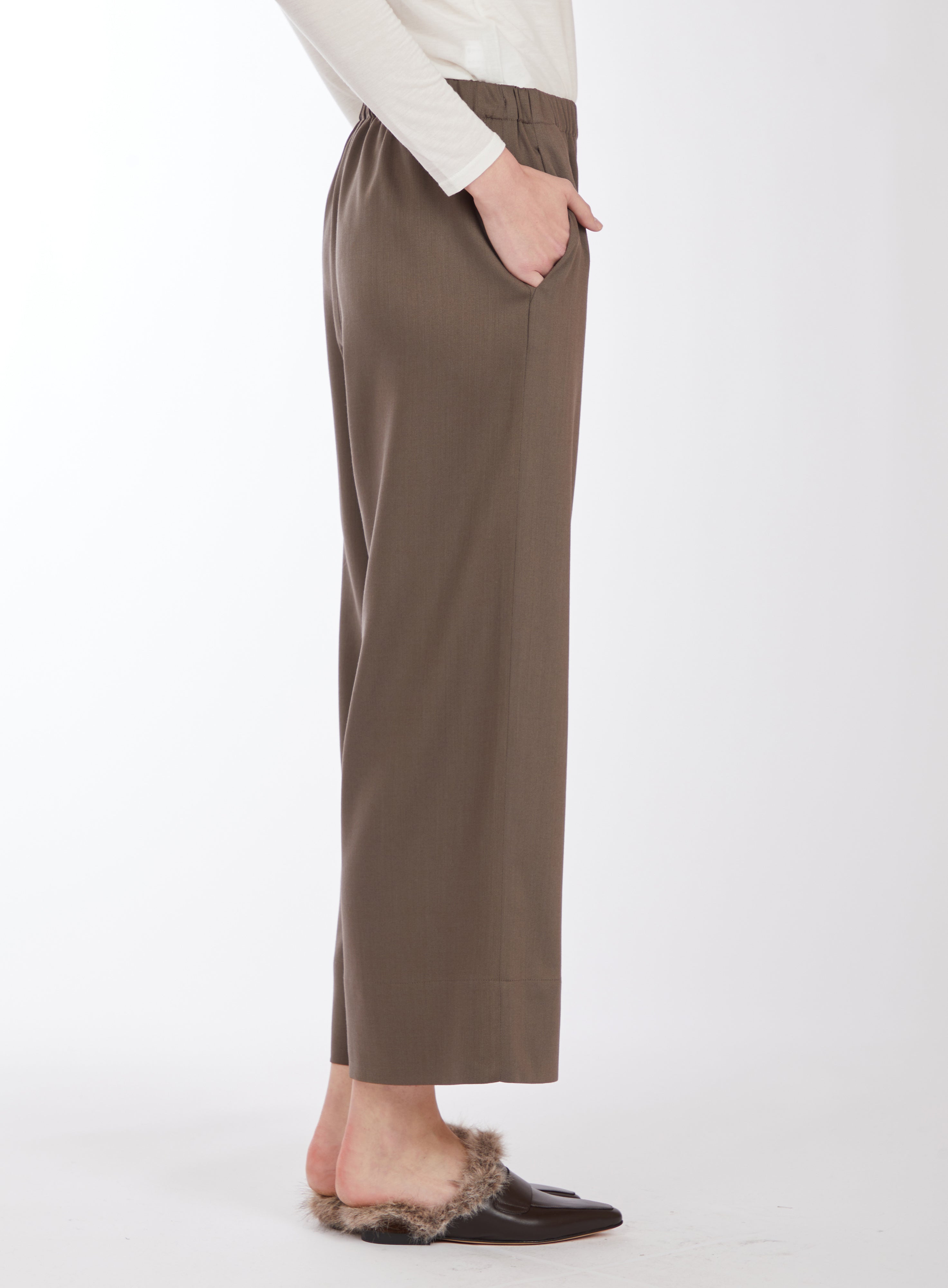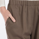 Pantalone lunghezza fino alla caviglia con elastico in vita.