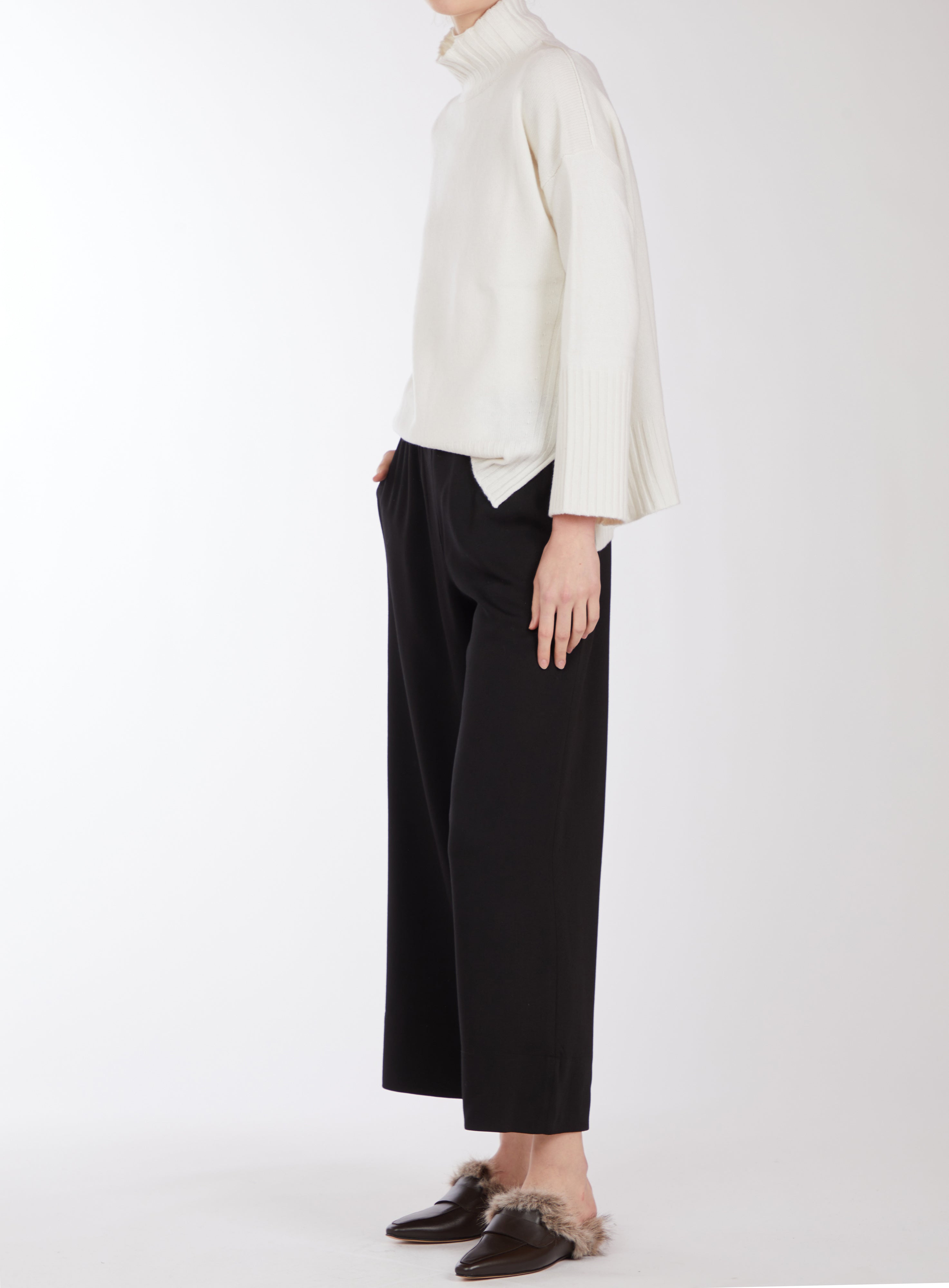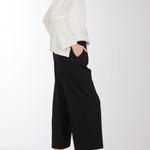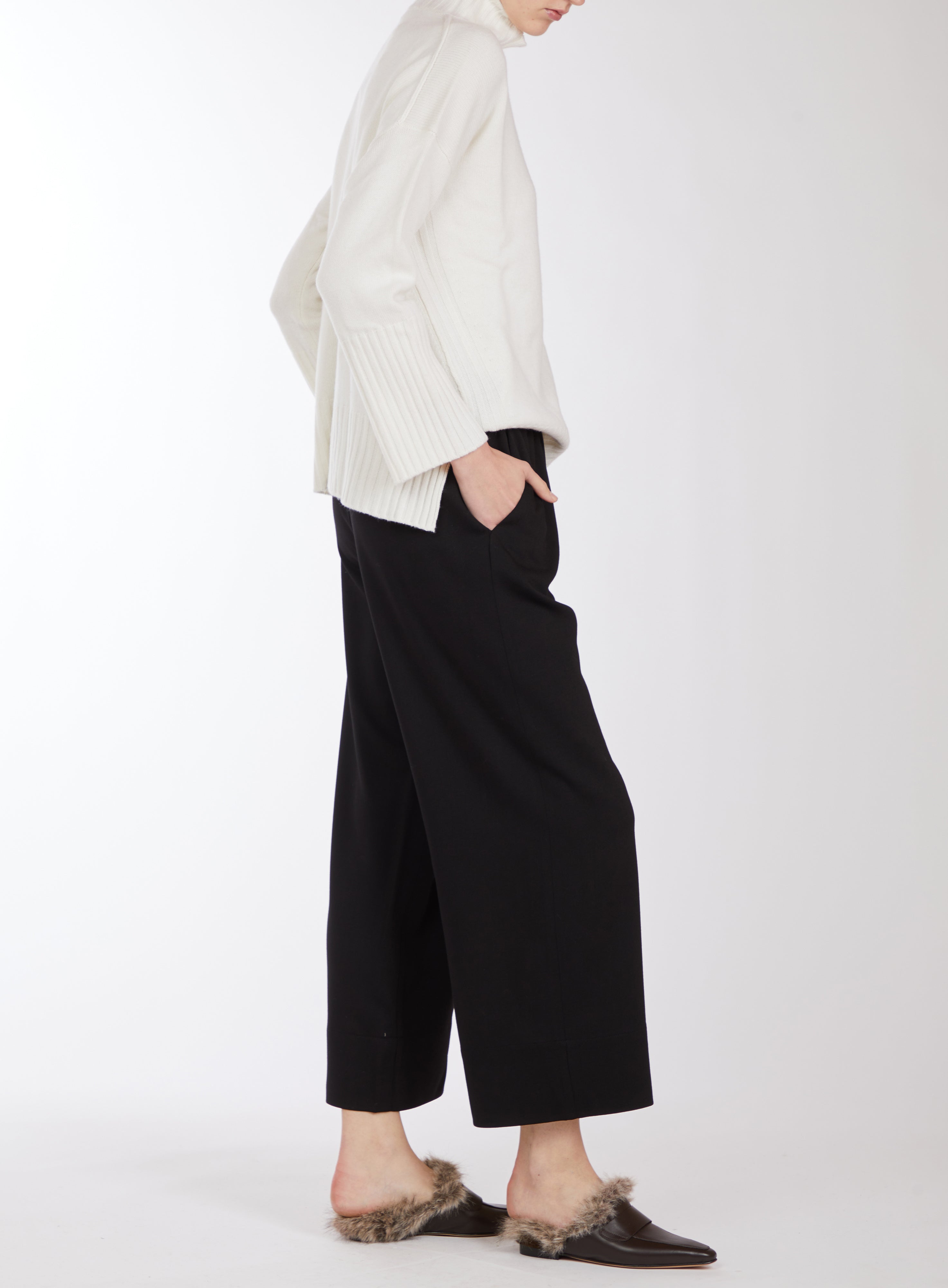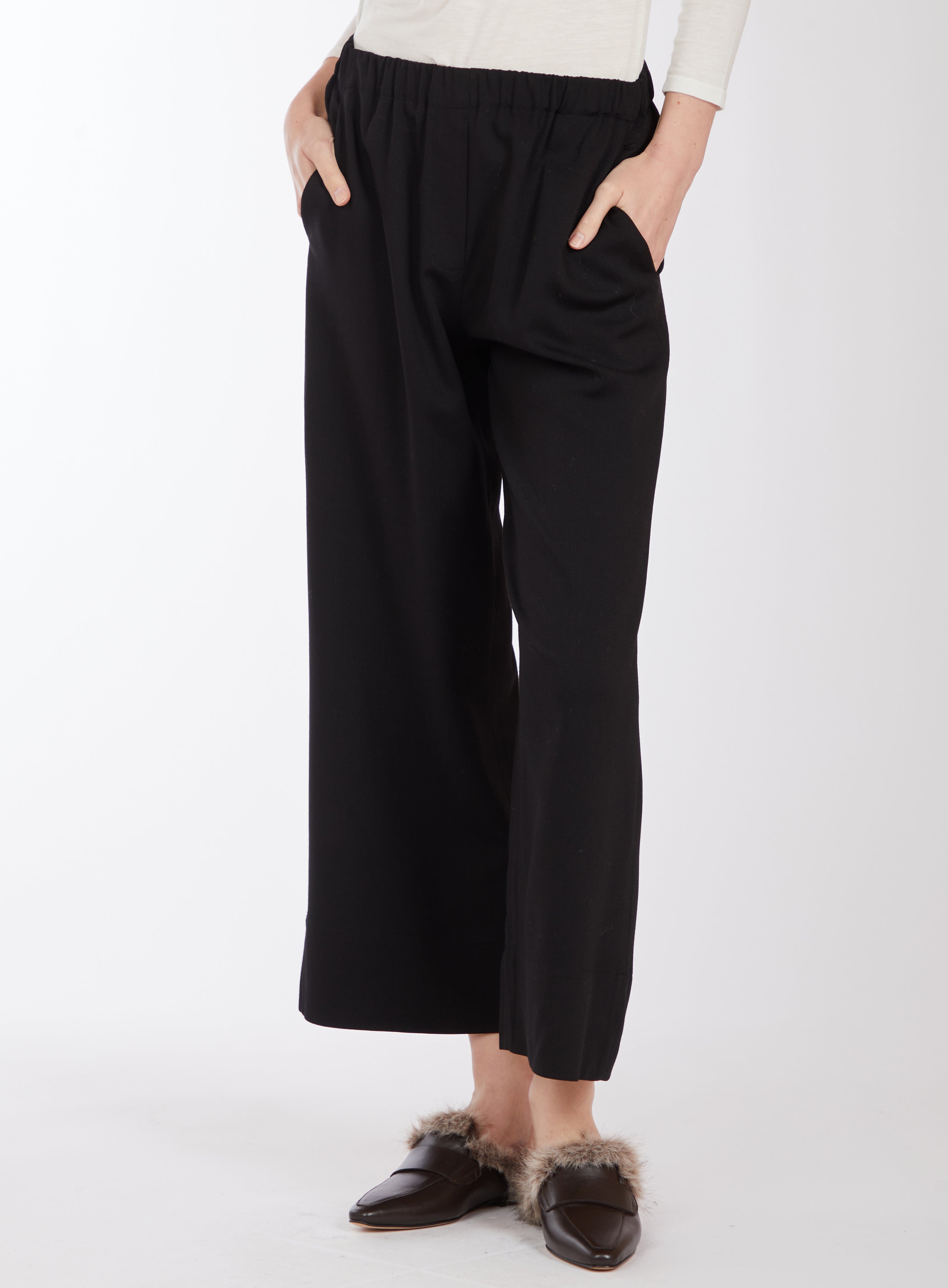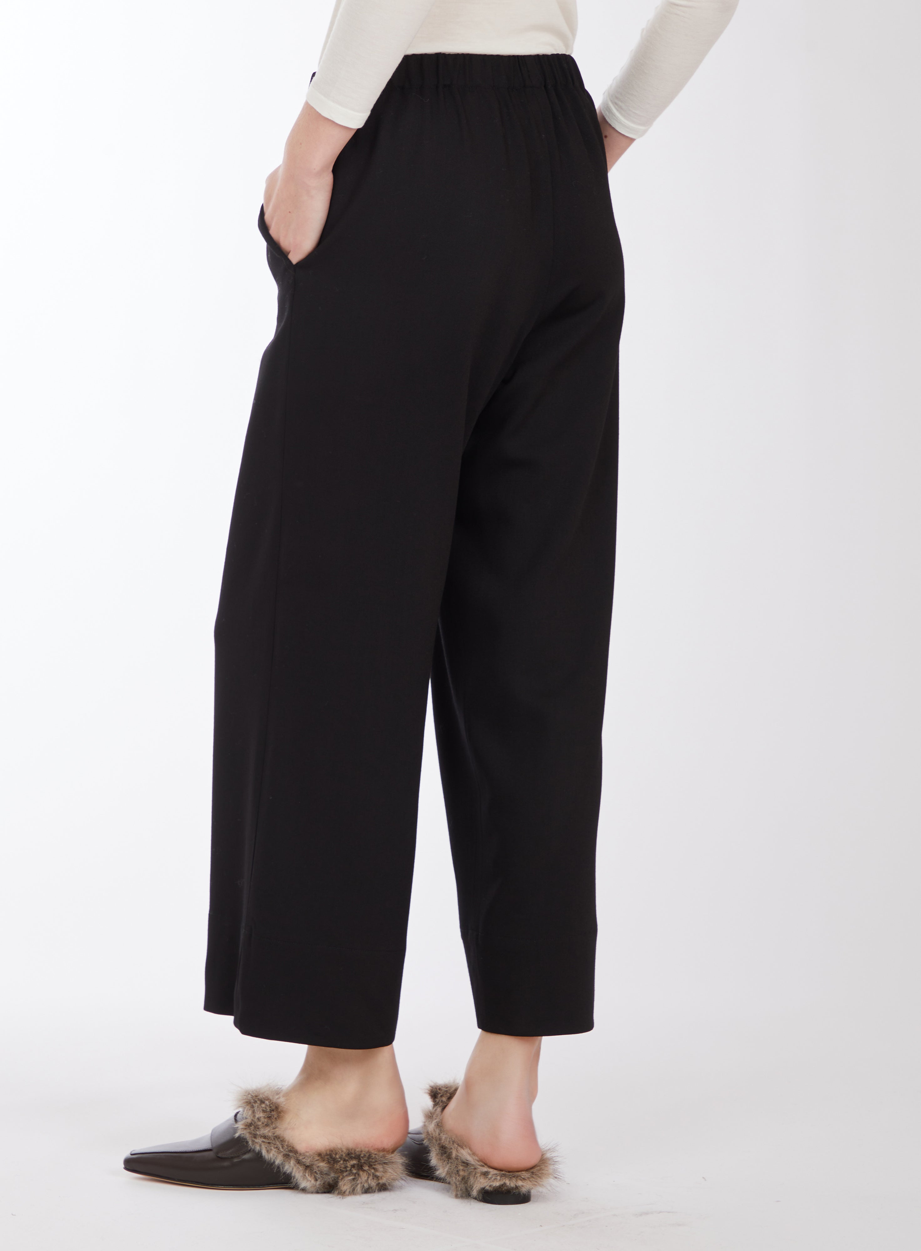 Pantalone lunghezza fino alla caviglia con elastico in vita.